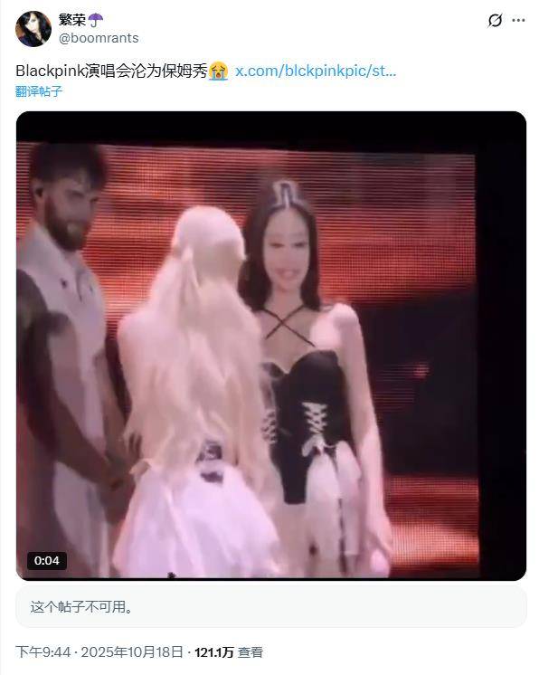 事件源于10月18日BLACKPINK在中国台湾举行的一场演出,这是团体数月来的首场表演。一段在网络上病毒式传播、浏览量迅速突破百万的片段,将Jennie推上了风口浪尖。视频中,Jennie似乎正回头望向某处,此时队友Rosé伸手将她拉回并调整站位,过程中Jennie步履略显踉跄,脸上带着灿烂的笑容。