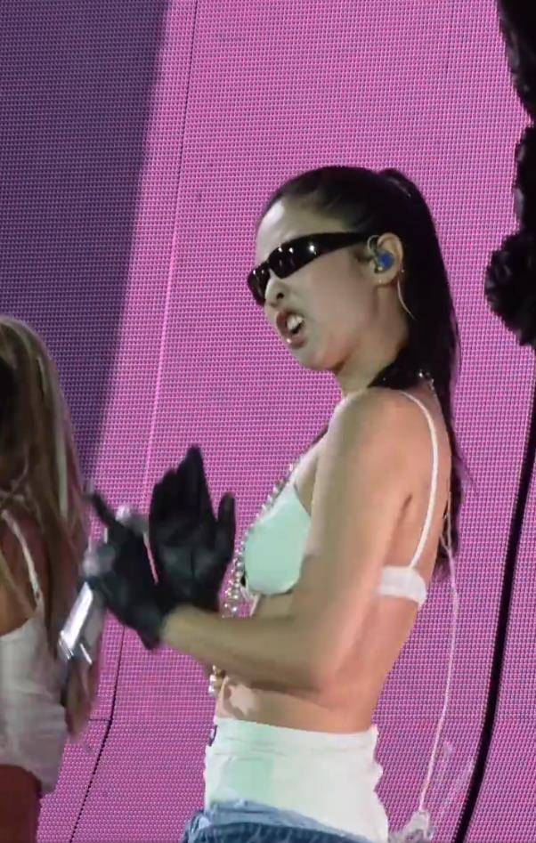 正是这短短的几秒钟,成了恶意评论的集中靶心。大量舆论将她的“回头”与“踉跄”解读为因观察一位有纹身的男性伴舞而“分心”,并据此批评她因关注男性而降低了演出专注度。一时间,针对Jennie的批评浪潮汹涌而来,其中更混杂了大量直白的羞辱,使得讨论焦点从“业务能力”彻底偏离。