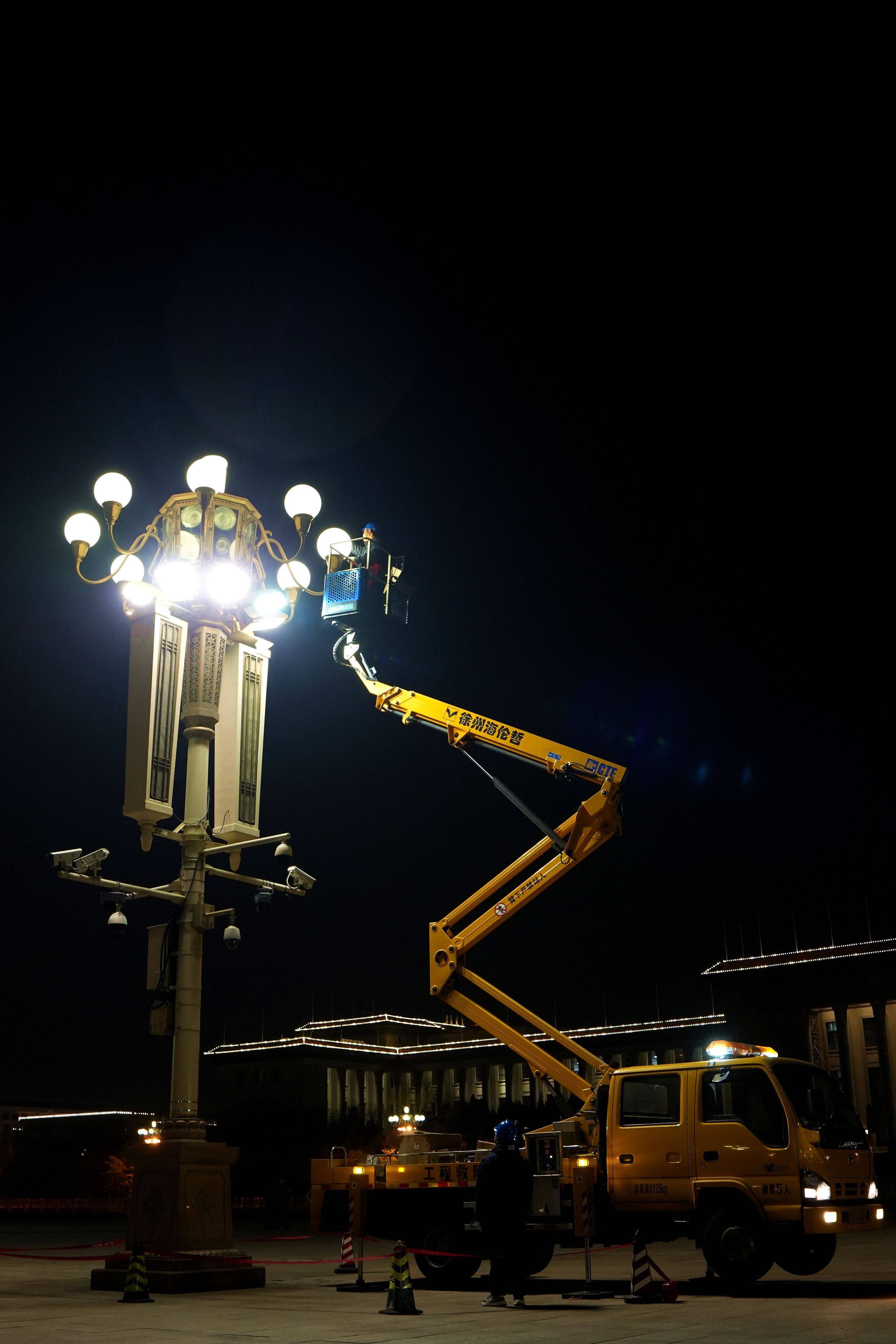 华灯班夜班组员正使用高空作业车,对华灯进行检修。新华社记者 马晓冬 摄“今年最后一项任务就是巡检广场华灯,必须确保光源运行万无一失。”作为夜班小组长,刘泉水出发前,再三叮嘱尤峥逐一核对巡检清单。冬日的北京昼短夜长,夜班小组需要赶在下午5点前抵达广场。