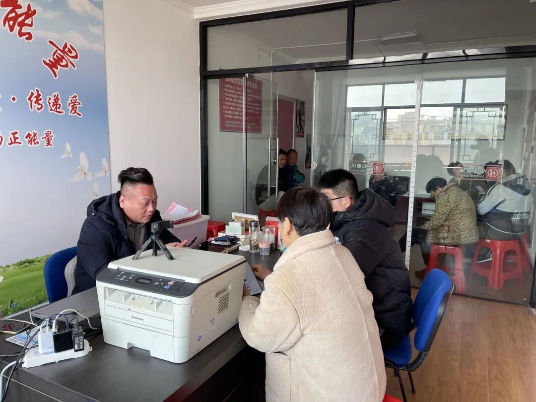 大年初三,孙磊在婚姻介绍所里接待前来登记找对象的人,门外还有很多男生和陪着来的家长在排队。(南方周末记者 陈佳慧 / 摄)