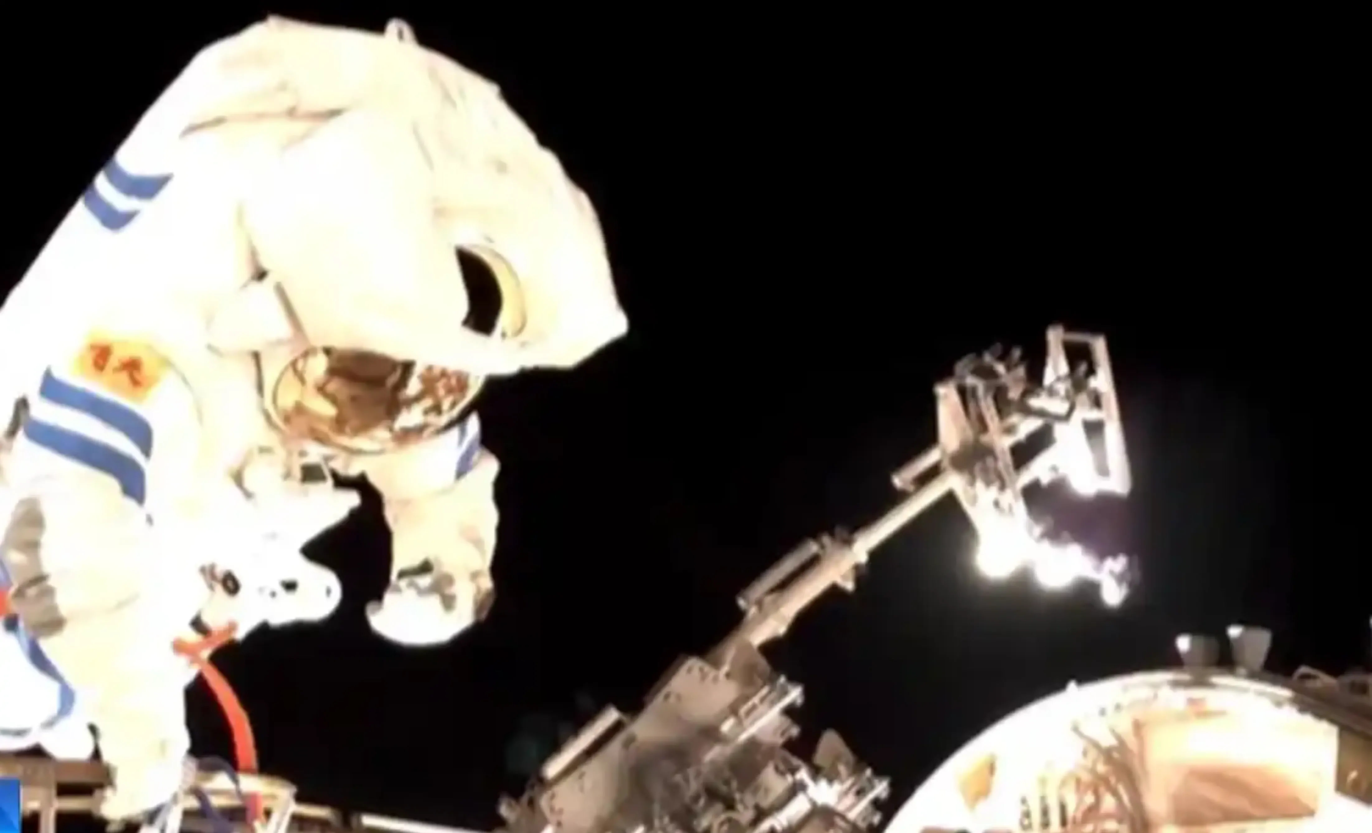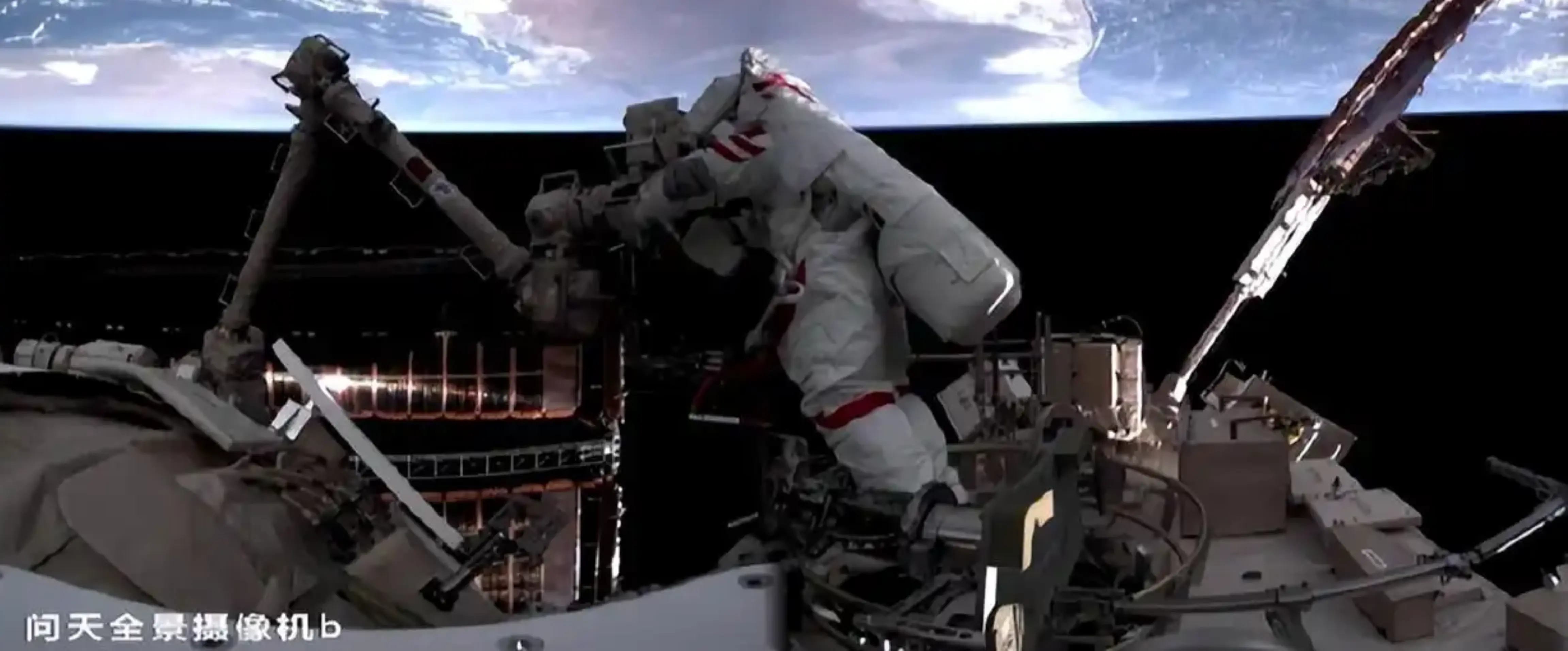 大约15时30分,航天员武飞成功出舱,协助张陆共同完成作业。